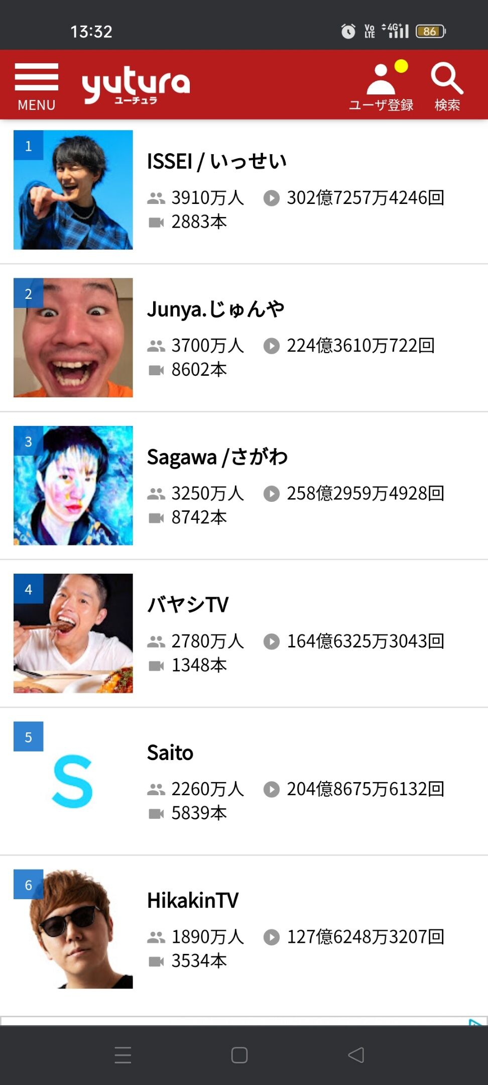 俺がいつも見てる野鳥チャンネルとか10万弱ぐらいやもんな、別世界すぎる